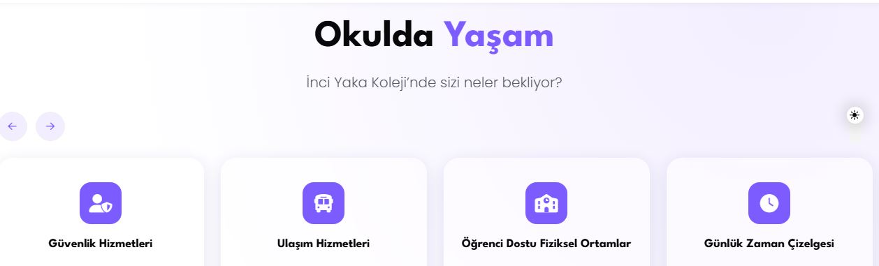 İnci Yaka Koleji, öğrencilerine modern ve güvenli bir okul ortamı sunar. Okulumuz, tam zamanlı sağlık personeli, hijyenik ve sağlıklı yemek hizmetleri, 7/24 güvenlik sistemleri ile öğrencilerimizin sağlığını ve güvenliğini ön planda tutar.